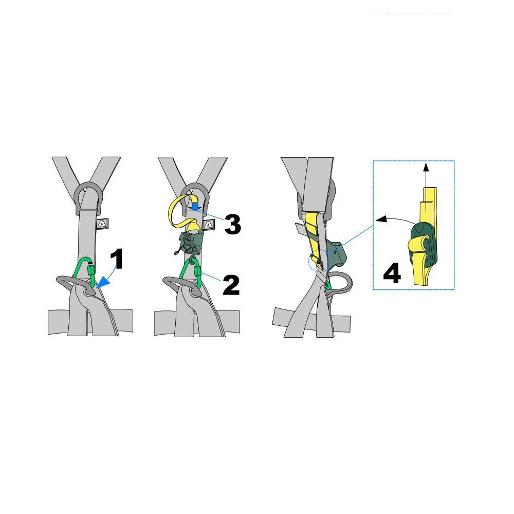 Cuvinte cheie în pagină: ascensiune, urcare, blocator pentru piept, conector cu insurubare tip DELTA, chinga sustinere